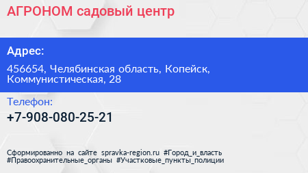 АГРОНОМ, садовый центр по адресу 456654, Челябинская область, Копейск, Коммунистическая, 28 в дальнейшем Организация, размещена в следующих категориях: