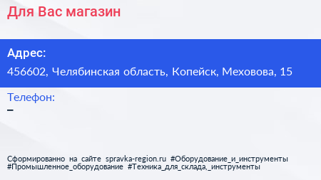 Для Вас, магазин по адресу 456602, Челябинская область, Копейск, Меховова, 15 в дальнейшем Организация, размещена в следующих категориях: