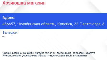 Хозяюшка, магазин по адресу 456657, Челябинская область, Копейск, 22 Партсъезда, 6 в дальнейшем Организация, размещена в следующих категориях: