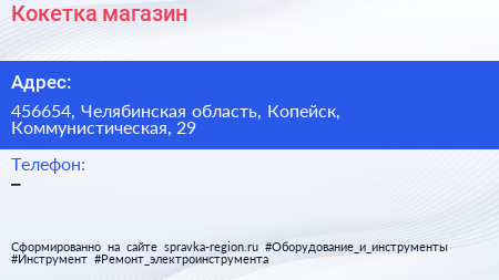 Кокетка, магазин по адресу 456654, Челябинская область, Копейск, Коммунистическая, 29 в дальнейшем Организация, размещена в следующих категориях: