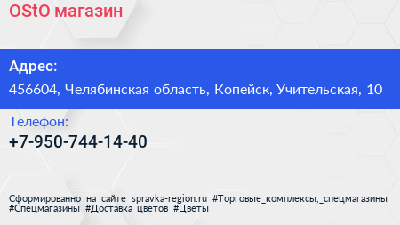 OStO, магазин по адресу 456604, Челябинская область, Копейск, Учительская, 10 в дальнейшем Организация, размещена в следующих категориях: