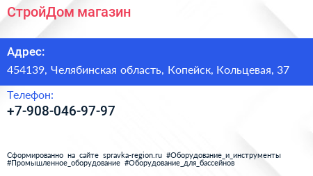 СтройДом, магазин по адресу 454139, Челябинская область, Копейск, Кольцевая, 37 в дальнейшем Организация, размещена в следующих категориях: