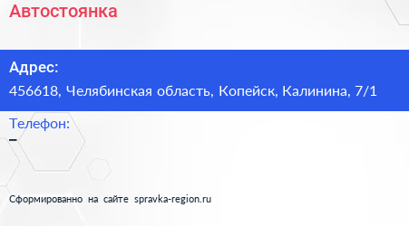 Автостоянка по адресу 456618, Челябинская область, Копейск, Калинина, 7/1 в дальнейшем Организация, размещена в следующих категориях: