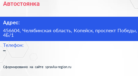 Автостоянка по адресу 456604, Челябинская область, Копейск, проспект Победы, 4Б/1 в дальнейшем Организация, размещена в следующих категориях: