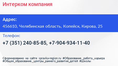 Интерком, компания по адресу 456610, Челябинская область, Копейск, Кирова, 25 в дальнейшем Организация, размещена в следующих категориях: