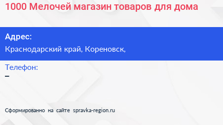 1000 Мелочей, магазин товаров для дома по адресу Краснодарский край, Кореновск, в дальнейшем Организация, размещена в следующих категориях: