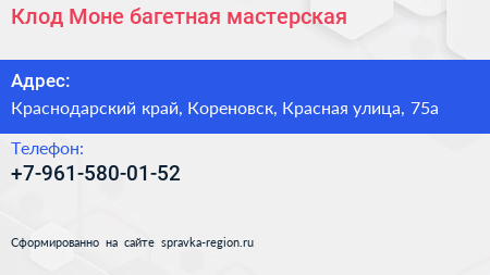 Клод Моне, багетная мастерская по адресу Краснодарский край, Кореновск, Красная улица, 75а в дальнейшем Организация, размещена в следующих категориях: