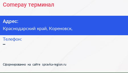 Comepay, терминал по адресу Краснодарский край, Кореновск, в дальнейшем Организация, размещена в следующих категориях: