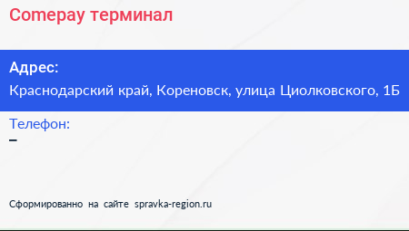 Comepay, терминал по адресу Краснодарский край, Кореновск, улица Циолковского, 1Б в дальнейшем Организация, размещена в следующих категориях: