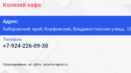 Адрес: Хабаровский край, Корфовский, Шоссейная, 14а/1
