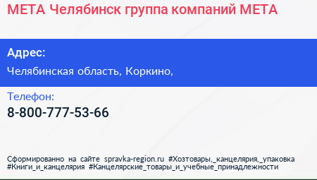 МЕТА-Челябинск, группа компаний МЕТА по адресу Челябинская область, Коркино, в дальнейшем Организация, размещена в следующих категориях: