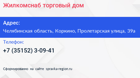 Жилкомснаб, торговый дом по адресу Челябинская область, Коркино, Пролетарская улица, 39а в дальнейшем Организация, размещена в следующих категориях: