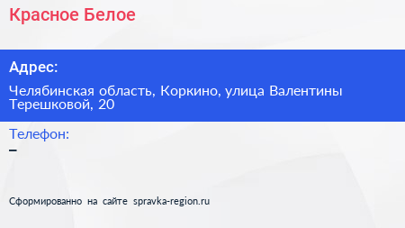 Красное & Белое по адресу Челябинская область, Коркино, улица Валентины Терешковой, 20 в дальнейшем Организация, размещена в следующих категориях:
