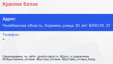 Красное & Белое по адресу Челябинская область, Коркино, улица 30 лет ВЛКСМ, 37 в дальнейшем Организация, размещена в следующих категориях: