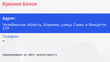 Красное & Белое по адресу Челябинская область, Коркино, улица Сакко и Ванцетти, 159 в дальнейшем Организация, размещена в следующих категориях: