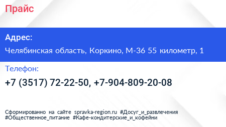 Прайс по адресу Челябинская область, Коркино, М-36 55 километр, 1 в дальнейшем Организация, размещена в следующих категориях: