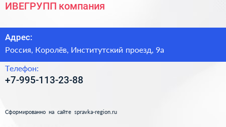 ИВЕГРУПП, компания по адресу 4-й центральный научно-исследовательский институт Министерства обороны Российской Федерации, улица 2-я просека, СНТ «Сосны», Юбилейный, Королёв, городской округ Королёв, Московская область, Центральный федеральный округ, 141068, Россия в дальнейшем Организация, размещена в следующих категориях: