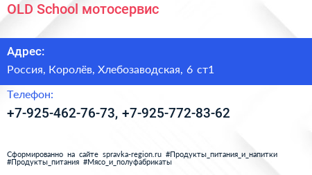 OLD School, мотосервис по адресу Мото шиномонтаж OldSchool, 6с1, Хлебозаводская улица, Леонидовка, Мытищи, городской округ Мытищи, Московская область, Центральный федеральный округ, 141007, Россия в дальнейшем Организация, размещена в следующих категориях: