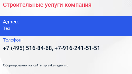 Строительные услуги, компания по адресу Tea в дальнейшем Организация, размещена в следующих категориях:
