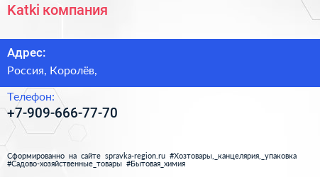 Katki, компания по адресу La Veranda, улица Космонавта Стрекалова, Комитетский Лес, Королёв, городской округ Королёв, Московская область, Центральный федеральный округ, 141073, Россия в дальнейшем Организация, размещена в следующих категориях: