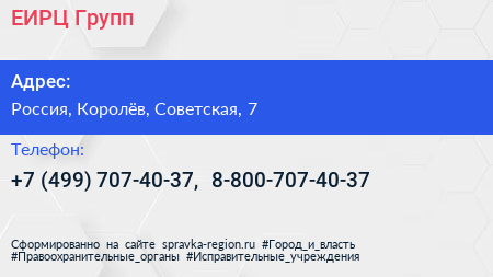 ЕИРЦ-Групп по адресу Российская школа (начальные классы), Школьный тупик, Комаровка, Первомайский, Королёв, городской округ Королёв, Московская область, Центральный федеральный округ, 141069, Россия в дальнейшем Организация, размещена в следующих категориях: