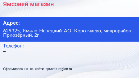 Ямсовей, магазин по адресу 629325, Ямало-Ненецкий АО, Коротчаево, микрорайон Приозёрный, 2г в дальнейшем Организация, размещена в следующих категориях: