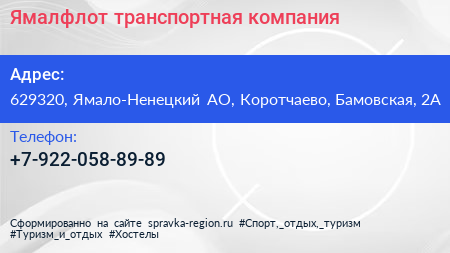Ямалфлот, транспортная компания по адресу 629320, Ямало-Ненецкий АО, Коротчаево, Бамовская, 2А в дальнейшем Организация, размещена в следующих категориях: