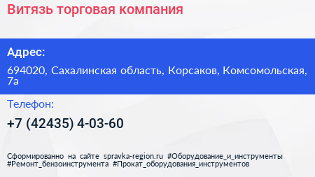 Витязь, торговая компания по адресу 694020, Сахалинская область, Корсаков, Комсомольская, 7а в дальнейшем Организация, размещена в следующих категориях: