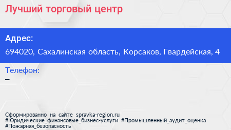 Лучший, торговый центр по адресу 694020, Сахалинская область, Корсаков, Гвардейская, 4 в дальнейшем Организация, размещена в следующих категориях: