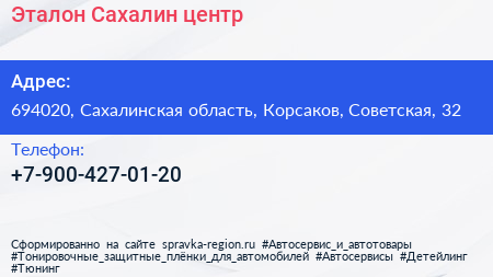 Эталон-Сахалин, центр по адресу 694020, Сахалинская область, Корсаков, Советская, 32 в дальнейшем Организация, размещена в следующих категориях: