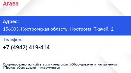 Агава по адресу 156003, Костромская область, Кострома, Ткачей, 2 в дальнейшем Организация, размещена в следующих категориях: