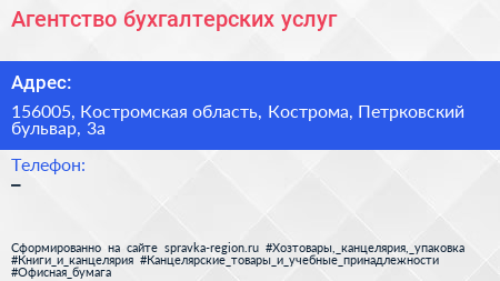 Агентство бухгалтерских услуг по адресу 156005, Костромская область, Кострома, Петрковский бульвар, 3а в дальнейшем Организация, размещена в следующих категориях: