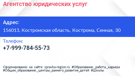 Агентство юридических услуг по адресу 156013, Костромская область, Кострома, Сенная, 30 в дальнейшем Организация, размещена в следующих категориях: