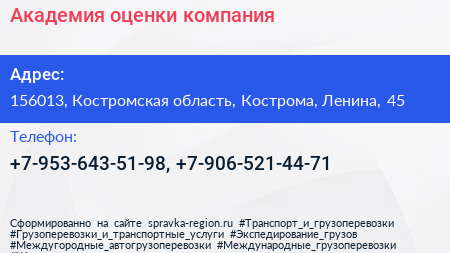 Академия оценки, компания по адресу 156013, Костромская область, Кострома, Ленина, 45 в дальнейшем Организация, размещена в следующих категориях: