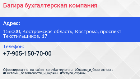 Багира, бухгалтерская компания по адресу 156000, Костромская область, Кострома, проспект Текстильщиков, 17 в дальнейшем Организация, размещена в следующих категориях: