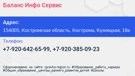 Баланс Инфо Сервис по адресу 156005, Костромская область, Кострома, Кузнецкая, 18а в дальнейшем Организация, размещена в следующих категориях: