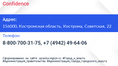 Confidence по адресу 156000, Костромская область, Кострома, Советская, 22 в дальнейшем Организация, размещена в следующих категориях: