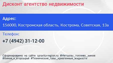 Дисконт, агентство недвижимости по адресу 156000, Костромская область, Кострома, Советская, 13а в дальнейшем Организация, размещена в следующих категориях: