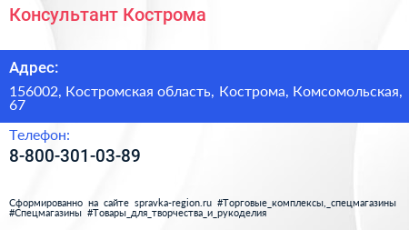 Консультант Кострома по адресу 156002, Костромская область, Кострома, Комсомольская, 67 в дальнейшем Организация, размещена в следующих категориях: