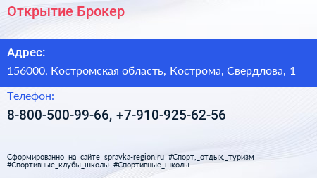 Открытие Брокер по адресу 156000, Костромская область, Кострома, Свердлова, 1 в дальнейшем Организация, размещена в следующих категориях: