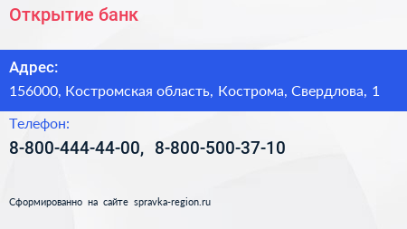 Открытие, банк по адресу 156000, Костромская область, Кострома, Свердлова, 1 в дальнейшем Организация, размещена в следующих категориях: