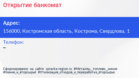 Открытие, банкомат по адресу 156000, Костромская область, Кострома, Свердлова, 1 в дальнейшем Организация, размещена в следующих категориях: