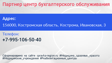 Партнер, центр бухгалтерского обслуживания по адресу 156000, Костромская область, Кострома, Ивановская, 3 в дальнейшем Организация, размещена в следующих категориях: