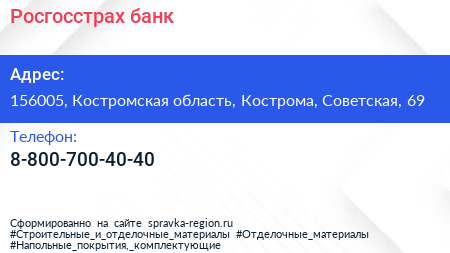 Росгосстрах банк по адресу 156005, Костромская область, Кострома, Советская, 69 в дальнейшем Организация, размещена в следующих категориях: