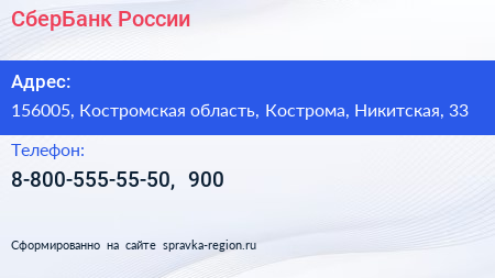 СберБанк России по адресу 156005, Костромская область, Кострома, Никитская, 33 в дальнейшем Организация, размещена в следующих категориях: