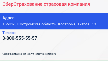СберСтрахование, страховая компания по адресу 156026, Костромская область, Кострома, Титова, 13 в дальнейшем Организация, размещена в следующих категориях: