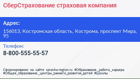 СберСтрахование, страховая компания по адресу 156013, Костромская область, Кострома, проспект Мира, 95 в дальнейшем Организация, размещена в следующих категориях: