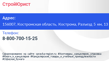 СтройЮрист по адресу 156007, Костромская область, Кострома, Разъезд 5 км, 13 в дальнейшем Организация, размещена в следующих категориях:
