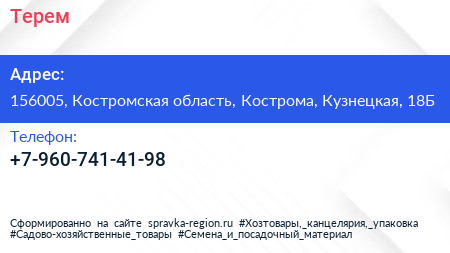 Терем по адресу 156005, Костромская область, Кострома, Кузнецкая, 18Б в дальнейшем Организация, размещена в следующих категориях: