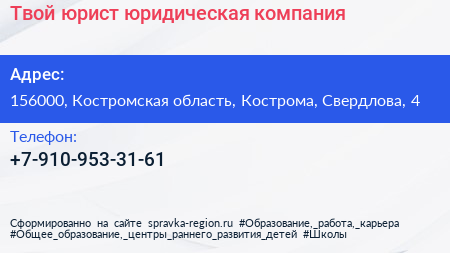 Твой юрист, юридическая компания по адресу 156000, Костромская область, Кострома, Свердлова, 4 в дальнейшем Организация, размещена в следующих категориях: